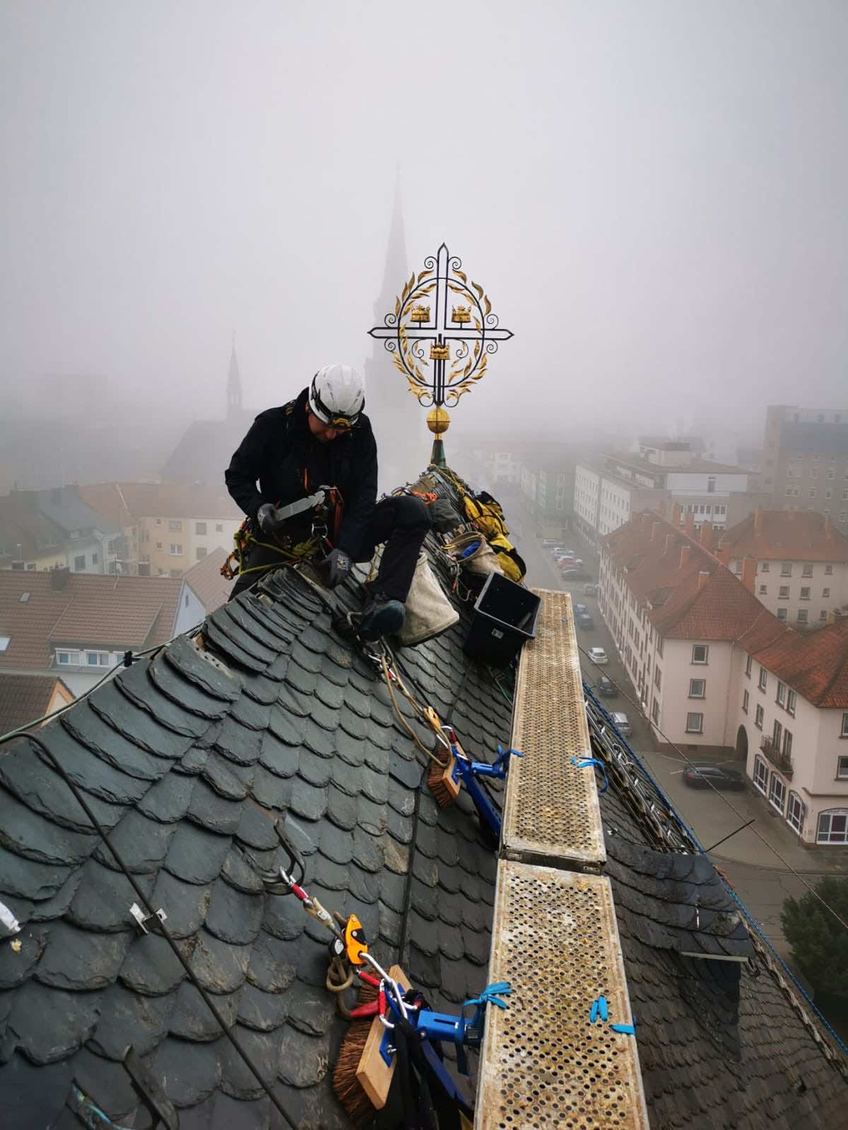 Seilbasierte Sanierungen – von den Dächern Kassels über das Turmkreuz des Mainzer Doms bis hin zu den Fugen der Burg Zwernitz.
