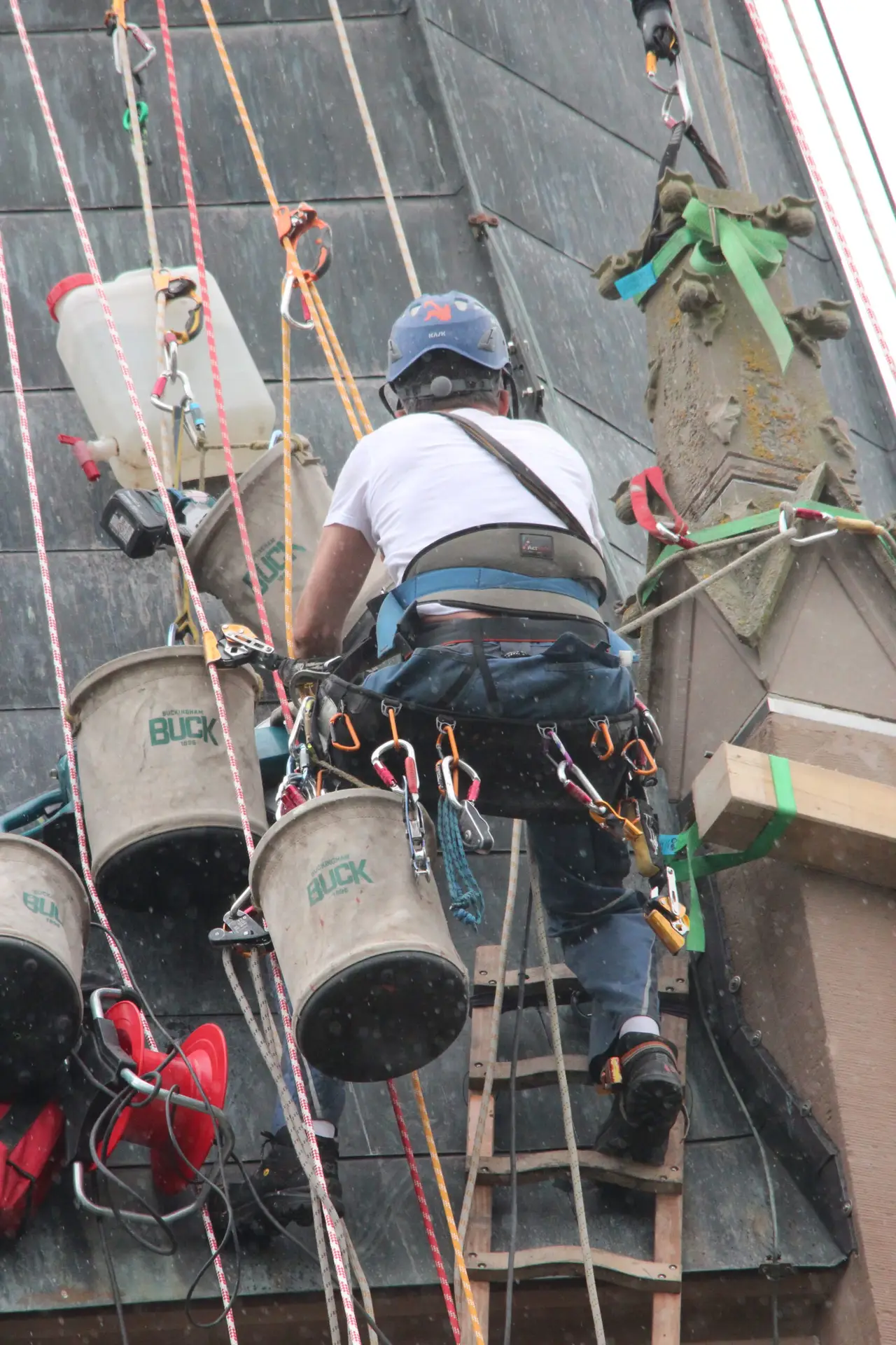Wir verbinden handwerkliches Können mit moderner Seilzugangstechnik und entwickeln maßgeschneiderte Lösungen für die Pflege und Restaurierung einzigartiger Bauwerke.